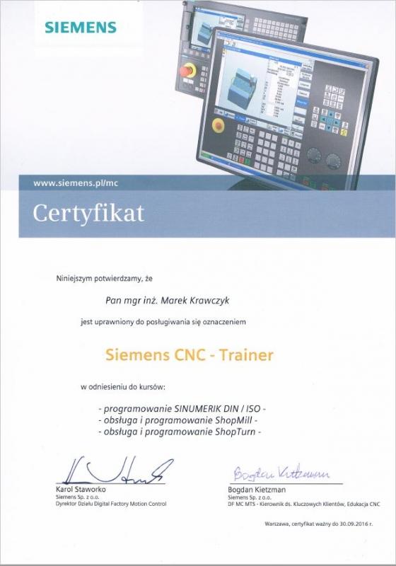 Certyfikowany Trener CNC firmy Siemens